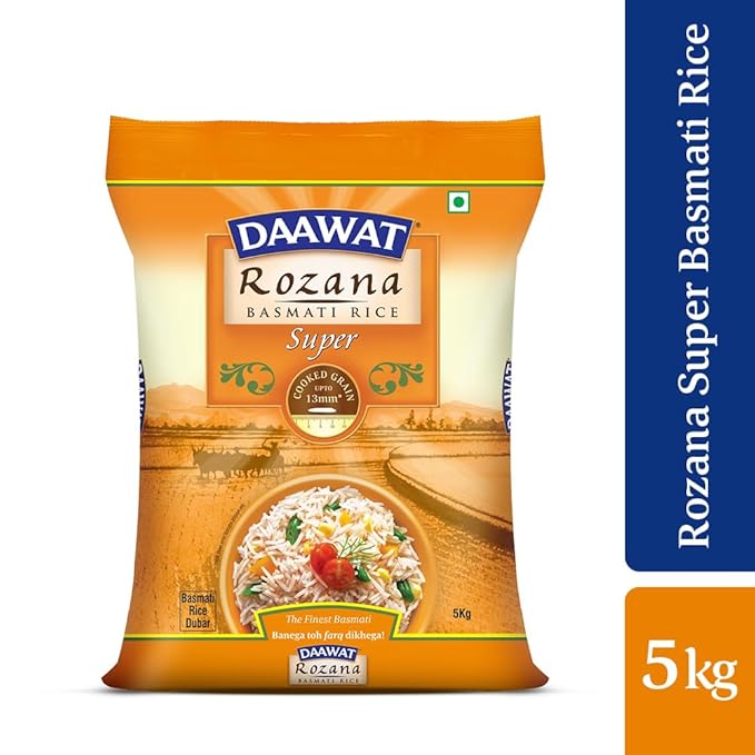 Enrich daily meals with goodness and taste. With its aged raw rice, it promises an exceptional culinary experience, whether used for aromatic biryani rice or everyday cooking. Elevate your dishes with the rich aroma and superior quality of Rozana Super Basmati Rice, making every meal a delightful affair.